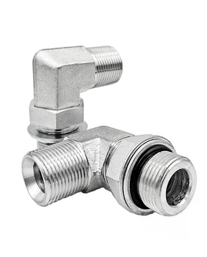Koleno, hrdlo 90° stavitelné (otočné) AG-BSPP + kontramatice s těsněním / AG-BSP na hadici. HR90 BSP KMWD/ BSP